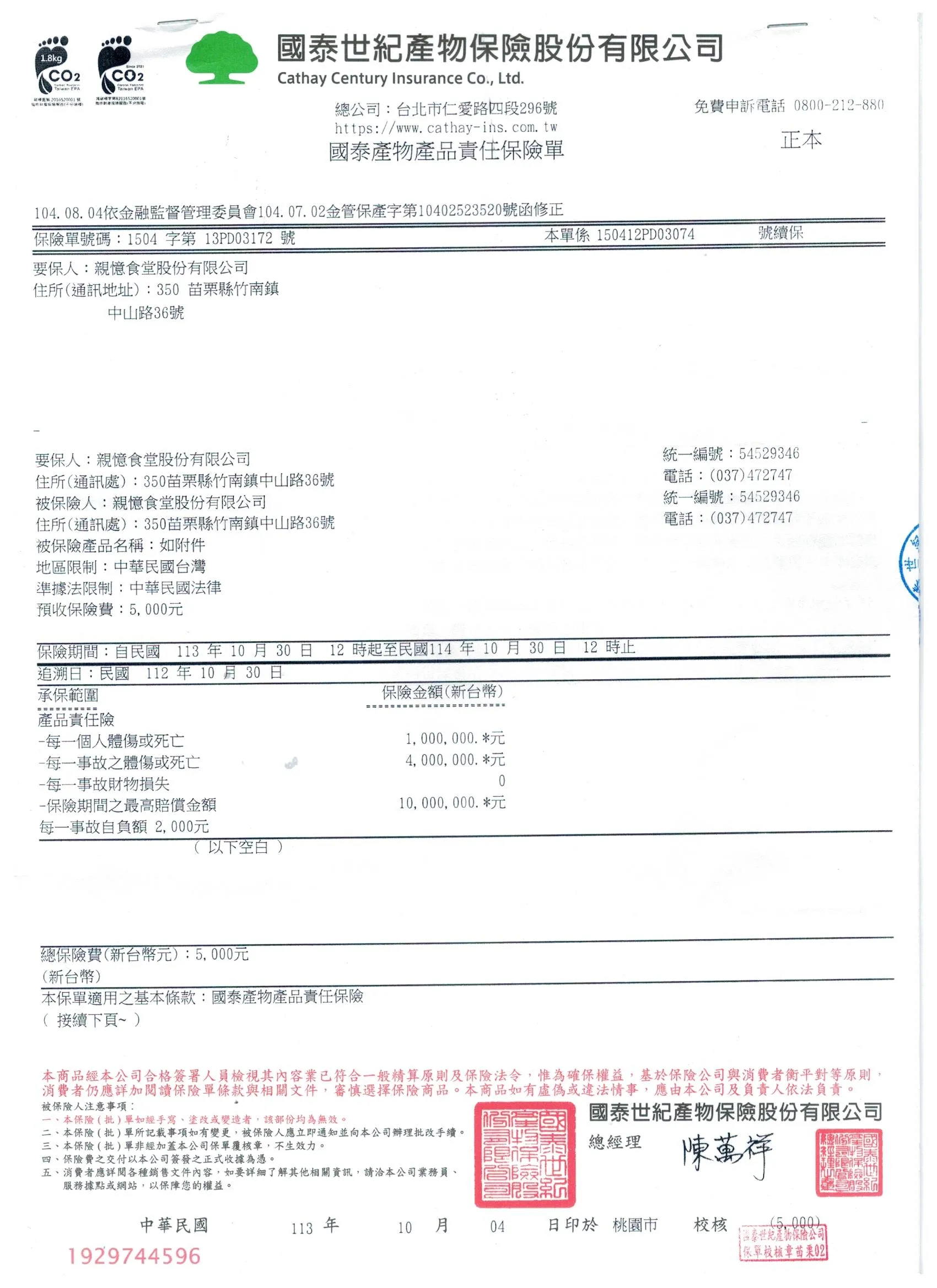 原料挑選 生產環境 相關認證 檢驗報告 產品保險 食品業者登錄字號:K-154529346-00000-6投保產品責任險字號:國泰世紀產險1504字第13PD03172號凡購買本網站產品之顧客若發生糾紛,雙方同意本事件受苗栗地方法院管轄受理之投保金額不等同理賠金額
