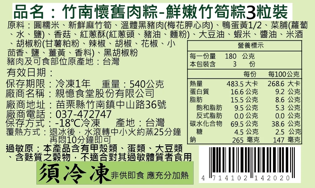 竹南懷舊肉粽-鮮嫩竹筍粽3粒裝