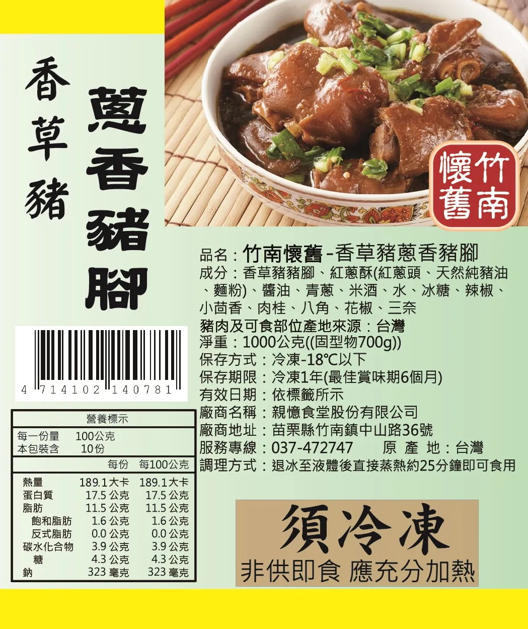 嚴選產銷履歷香草豬豬腳中段部位,嚴選適口性規格大小,以紅蔥爆香大火快炒後,佐以冰糖、醬油等食材長時間煨煮,再加上嚴選青蔥,皮與瘦肉完美比例也不糜爛,香草豬肉質軟Q彈牙沒有腥味,肉香四溢,為年節宴菜及平時加菜一時之選,送禮自用兩相宜